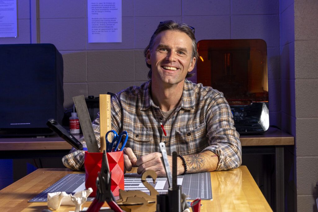 Andrew Johnson is an emerging technologies librarian who leads the Makerspace at the University of Georgia’s McBay Science Library. (Photo by Dorothy Kozlowski/UGA)