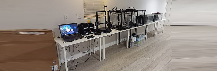 Over the last three years, spaces such as the garage, living room and basement have morphed several times into very functional makerspaces. This includes a large 3D printer area, EE benches, light and heavy equipment and more.