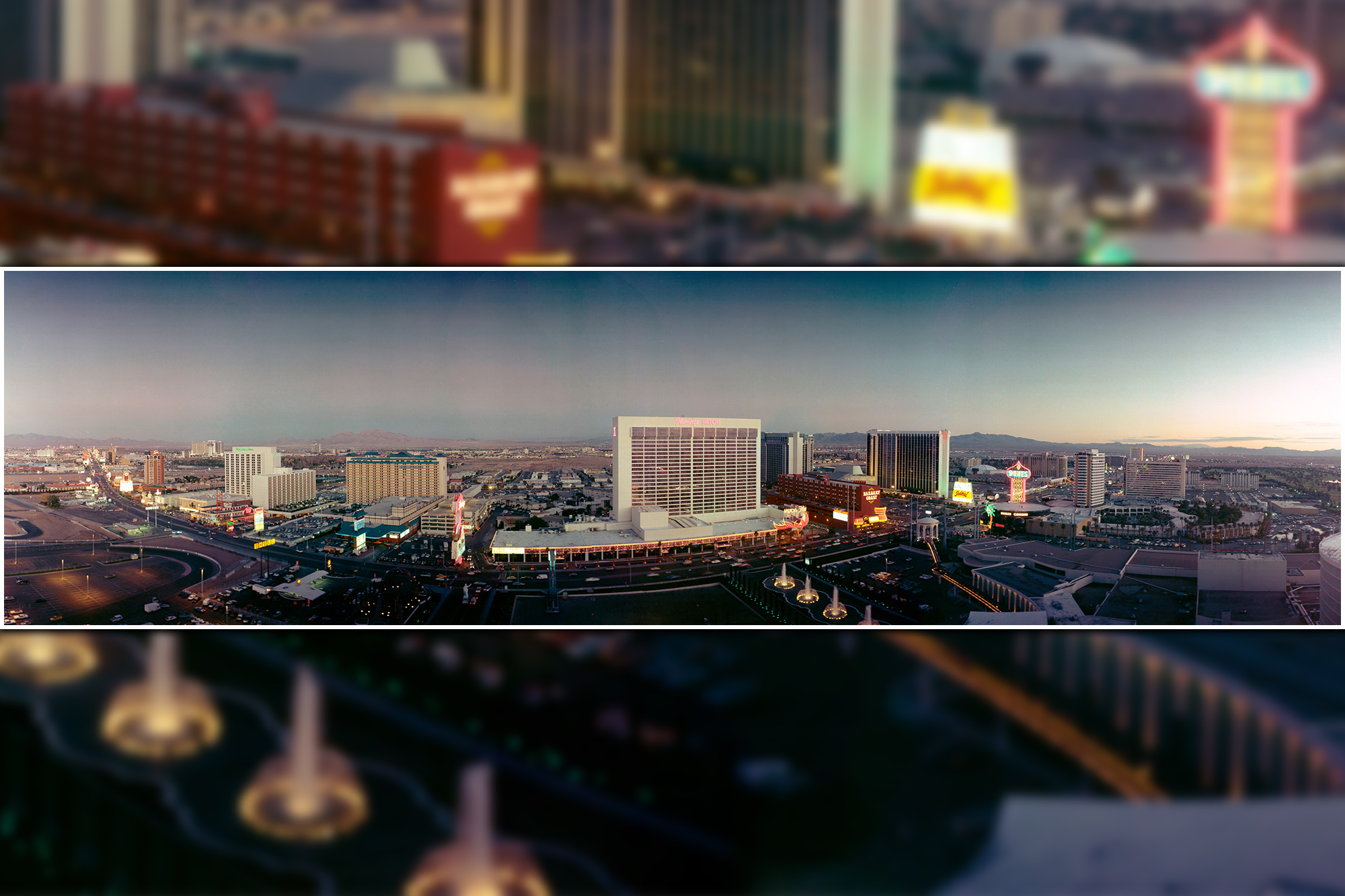 In the foreground, the fountains of Caesars Palace, from whose Fantasy Tower Robert Paluzzi shot this panoramic view of Carter-era Las Vegas.