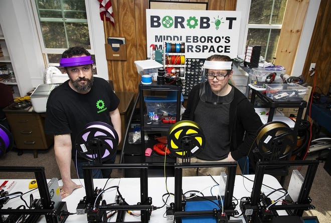 MIDDLEBORO — Inside the BoroBot makerspace, a dozen 3-D printers are crafting the newest version of a modified face shield design aiming to protect health care workers battling COVID-19.
