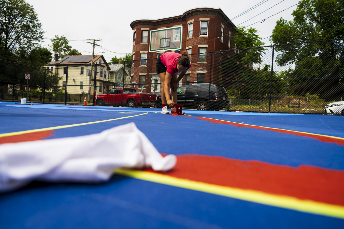 Santos recently won a contest to design a basketball court being renovated by the NBA star in Boston’s Dorchester neighborhood.