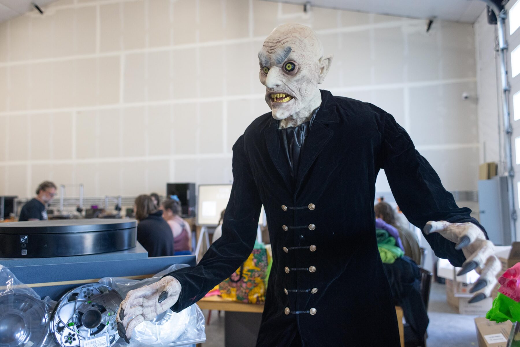 In a McMinnville warehouse crowded with machines, Halloween props, and half-finished creations, four people work silently, molding clay into monster-themed bowls in a class called “Geomancy 101: Mud Skull VooDoo.”