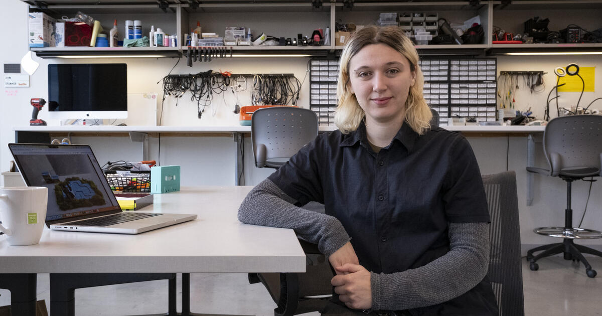 Thanks to the Loretta C. Duckworth Scholars Studio s Makerspace Residency, Goss used the technology of the space to construct an amusement park ride for their thesis, The Tunnel of Love, which explores how rules and regulations govern space and limit access. They constructed the cart from a mobility scooter with a track made out of PVC pipe. Goss MFA exhibition opens on March 22 at the Temple Contemporary Gallery.
