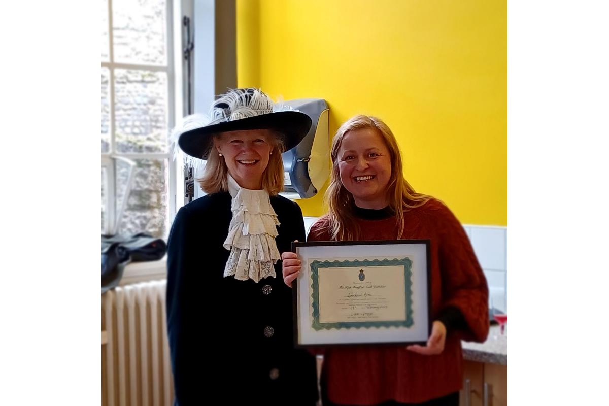 High Sheriff of North Yorkshire Mrs Clare Granger presented Dandelion Arts’ creative director Katie Matthews with the accord ‘in recognition of great and valuable services to the community’.
