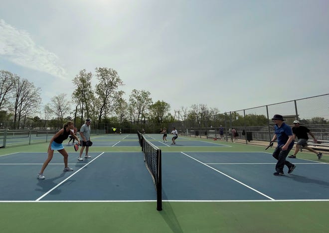 Pickleball fans use The Hawk's wildly popular pickleball courts in May 2023.