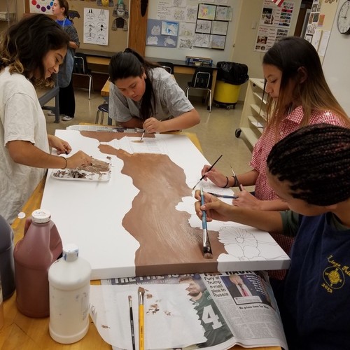 Students have been working in groups to develop a concept for their creations, reach out to organizations in the county, and plan each stage of the development of their piece. Each project requires collaboration and cooperation within the group in order to reach completion, and students have been honing their communication skills as they reach out to various organizations to pitch and refine their project ideas.