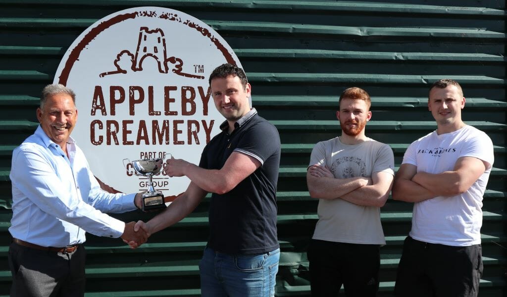 Kerry Love presents the Sean Wilson trophy to operations manager Tom Jackson, watched by Tom Bucknall, the creamery’s Maker Space co-ordinator (second from right) and Alex Jackson, head cheesemaker