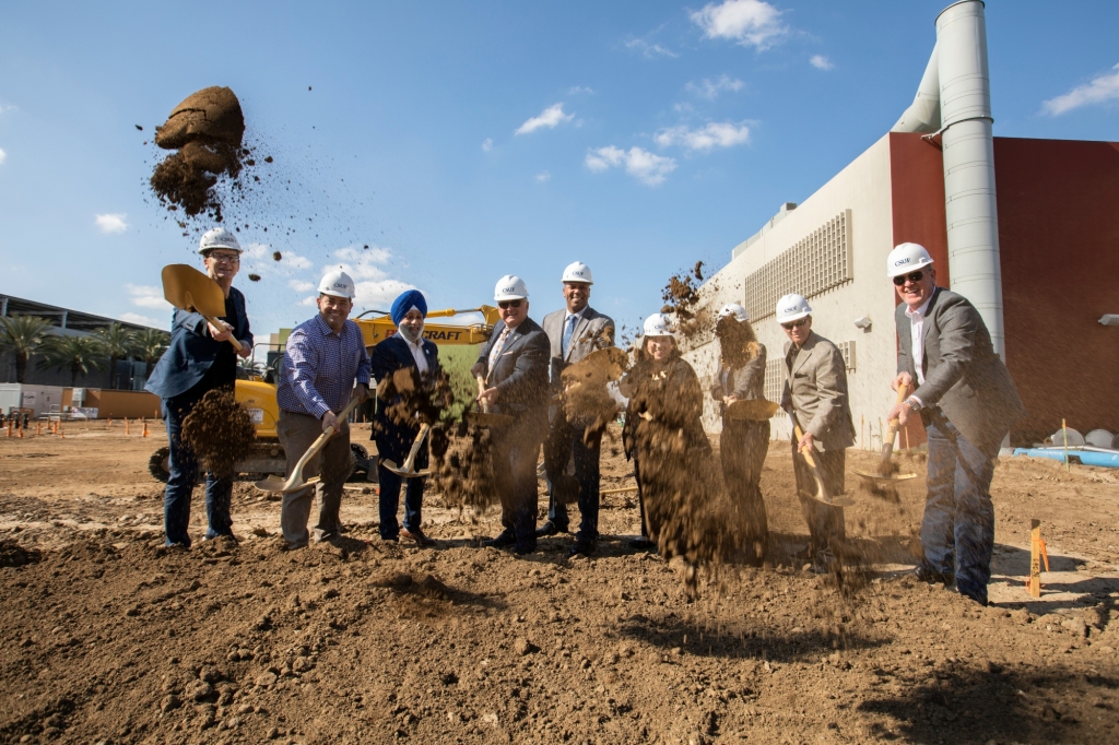 Administrators break ground on the foundation for the new Visual Arts Modernization Project. (Courtesy of CSUF News Media Services)
