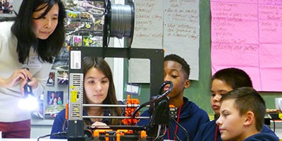 For 75 minutes each Tuesday afternoon, the boys and girls meet in a “makerspace” classroom equipped with a 3D…