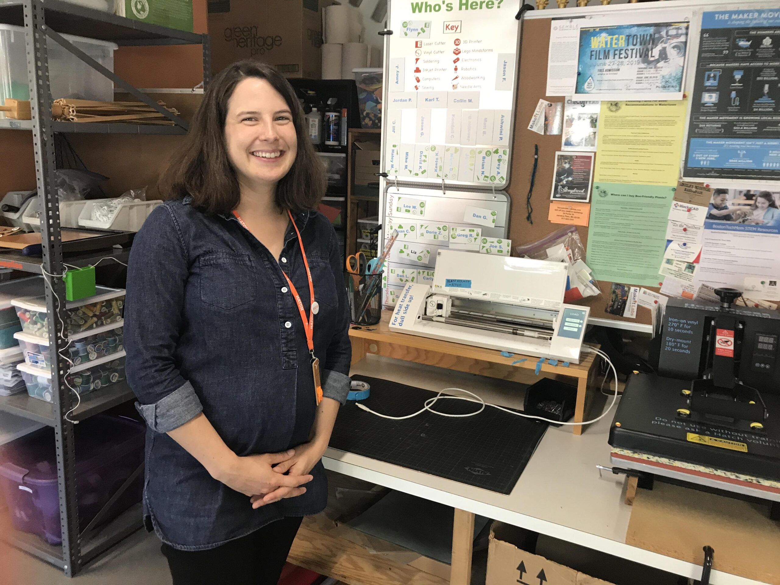 WATERTOWN – Machines whir and chatter inside the HATCH makerspace at 50 Summer St. It is a hot summer day and Elizabeth “Liz” Helfer is demonstrating how to use some of the tools at the studio to a group of children.