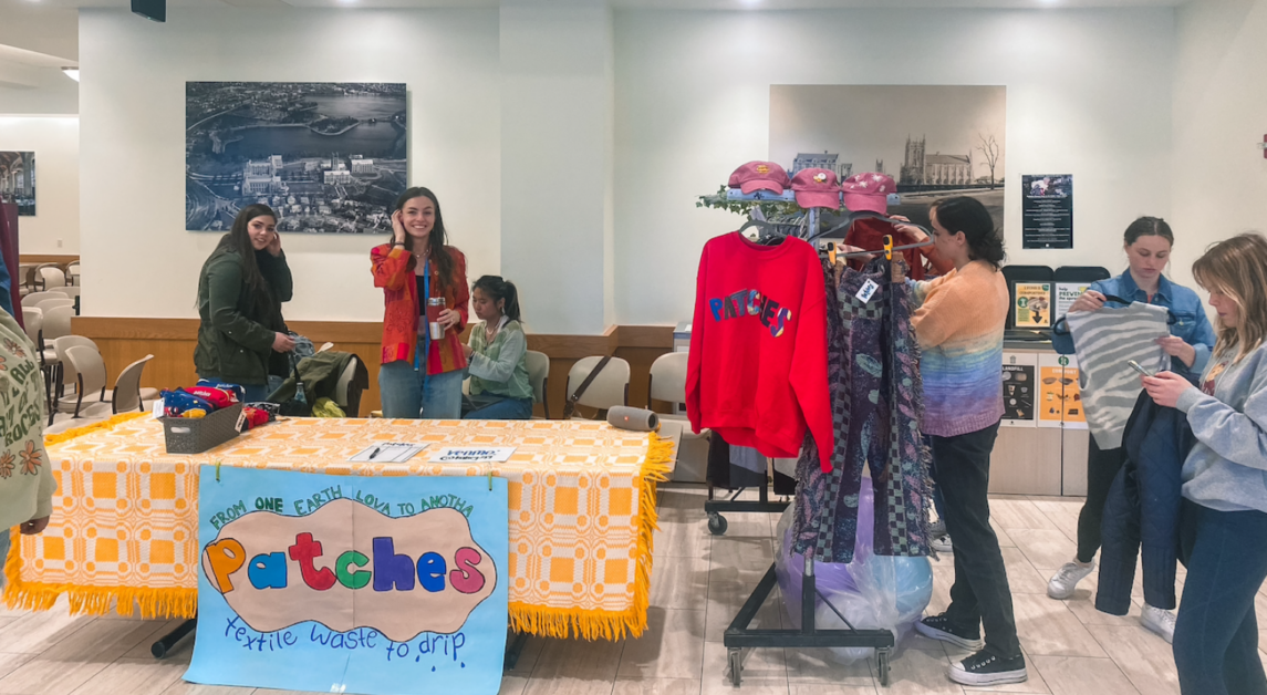 Today, Garrett, MCAS ’23, is the president and founder of Patches—a new club at BC centered around teaching the community how to sew and upcycle secondhand clothing and fabric.