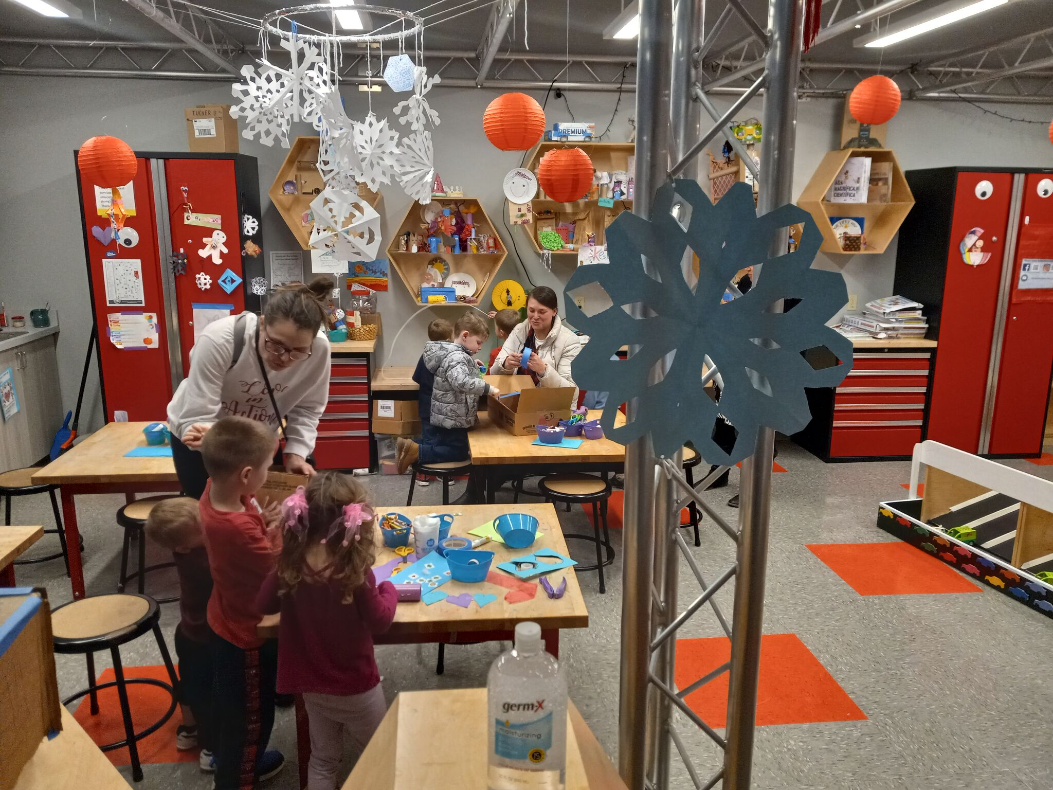 The recent Winterpalooza party welcomed Polar Pond, which children quickly discovered in the main playroom of the museum. The pond, built by exhibits and facilities manager Karl Nilsson, has big, stuffed penguins, a polar bear and a baby seal to play with, but otherwise, it’s just a slippery space.