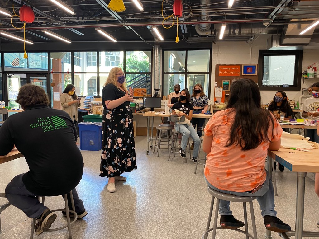 Around 20 teens gathered at Woodland Public Library’s Square One makerspace earlier this week to meet the new librarian who will be serving them.