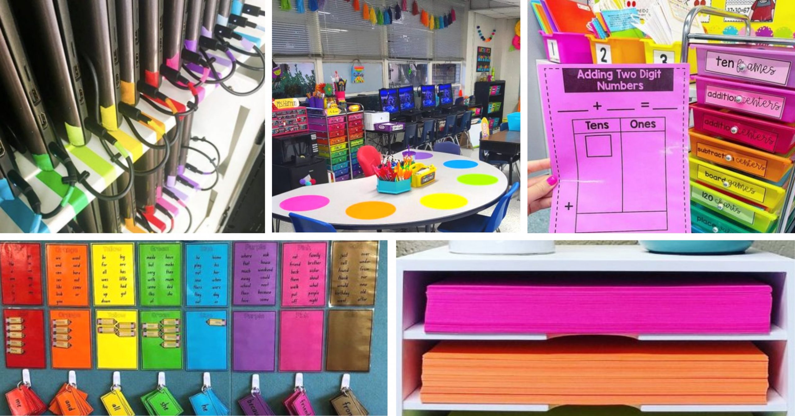 Nobody loves color coding more than a teacher! Not only is color coding classrooms super satisfying, but it also makes a teacher’s life easier. Teachers are busy and always have a thousand things to do, so color coded organization can go a long way toward making our lives easier. Your color coded classroom will also help your students be more efficient and productive. Here are some ideas to get you started!
