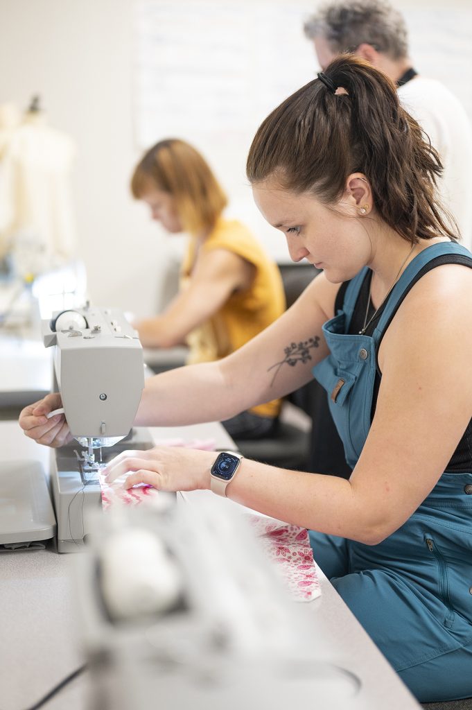 Faculty member Juliana Reese works on one of the sewing machines at the Aspen campus.
