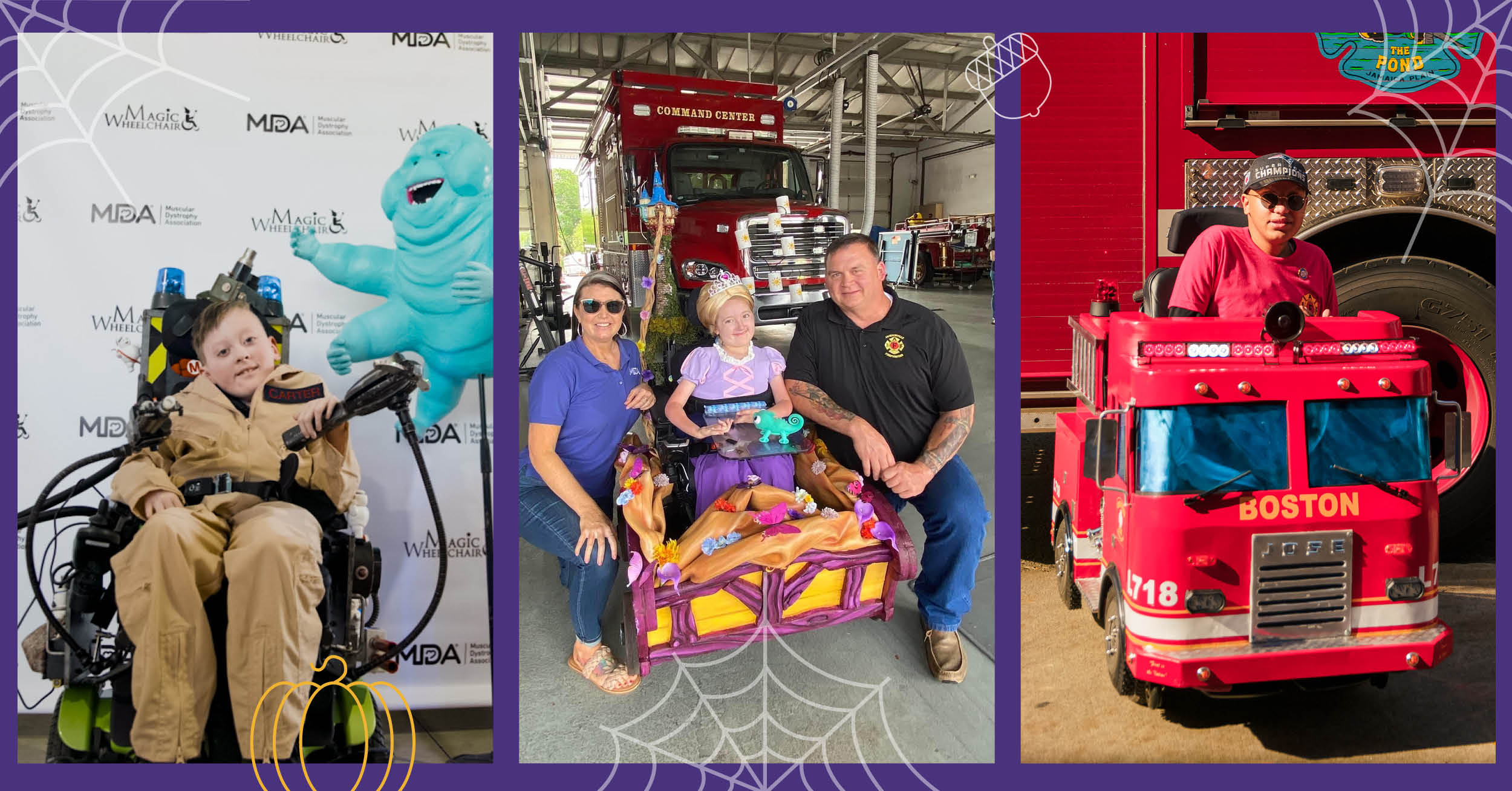 Muscular Dystrophy Association and Magic Wheelchair launch 2023 Instagram Sweepstakes October 23rd to win a dream costume reveal in 2024. Pictured L to R: Members of the neuromuscular community including Carter, Anna, and Jose in their Magic…
