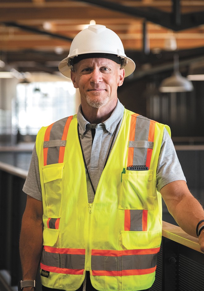Greg Forsyth is eager to talk about the new Carla Peperzak Middle School. It’s mid-July, and the site is abuzz with workers both inside and out. The school’s Palouse-inspired golden brick design can catch visitors off-guard as it seamlessly emerges from the landscape just off 63rd and Regal on the South Hill. There’s still plenty that needs to be done outside; inside, bundles of wiring are still visible. Floors have yet to be laid. Roughed in plywood surfaces are plentiful. Nonetheless, an open design flooded with natural light featuring breathtaking views from all those windows is taking shape.