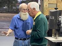 CORE President Jim Green, right, talks with MakerSpace volunteer David Powell recently at the group’s open house.