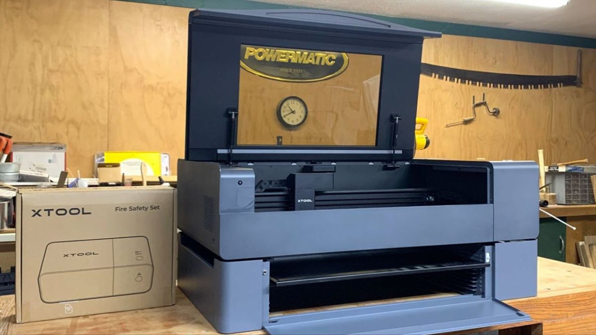 xTool is calling this a “desktop” machine, which is technically accurate if you’re the Incredible Hulk. This beast weighs 99 pounds, takes up 39 inches of counter space and took two men to hoist into my studio.
