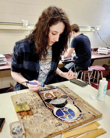 London High School senior Brooklyn Field works on a stained glass piece. Works like these, made by students across all grade levels, will be on display at London City Schools’ STEAM Festival on April 1.