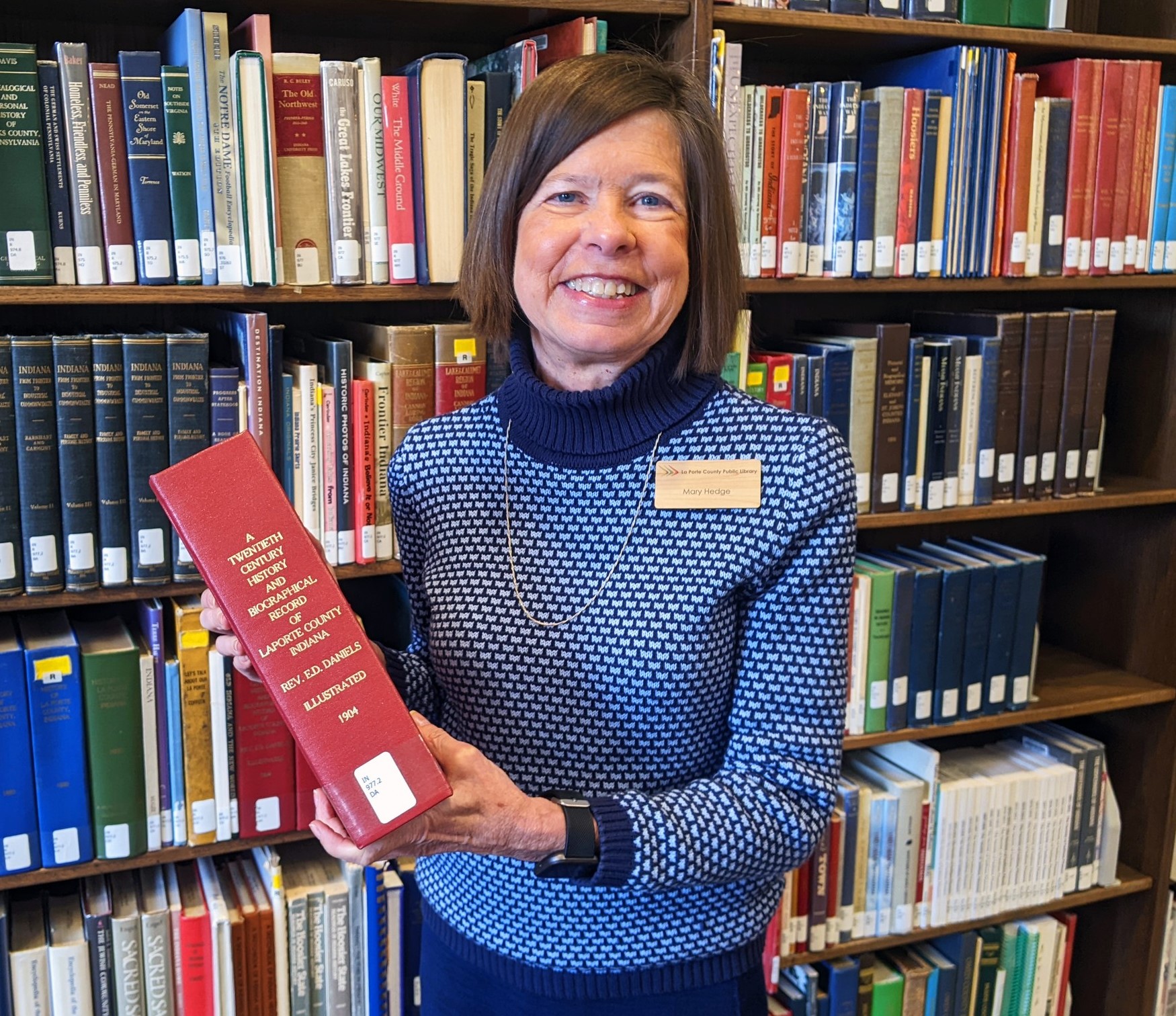 Mary Hedge started working at La Porte Library over 41 years ago. Her first day was January 4, 1982. “I was just so happy to have a job here,” she said, thinking back on her first days at La Porte’s historic Carnegie library. Hedge grew up on farm in Iowa, then attended college outside Chicago.