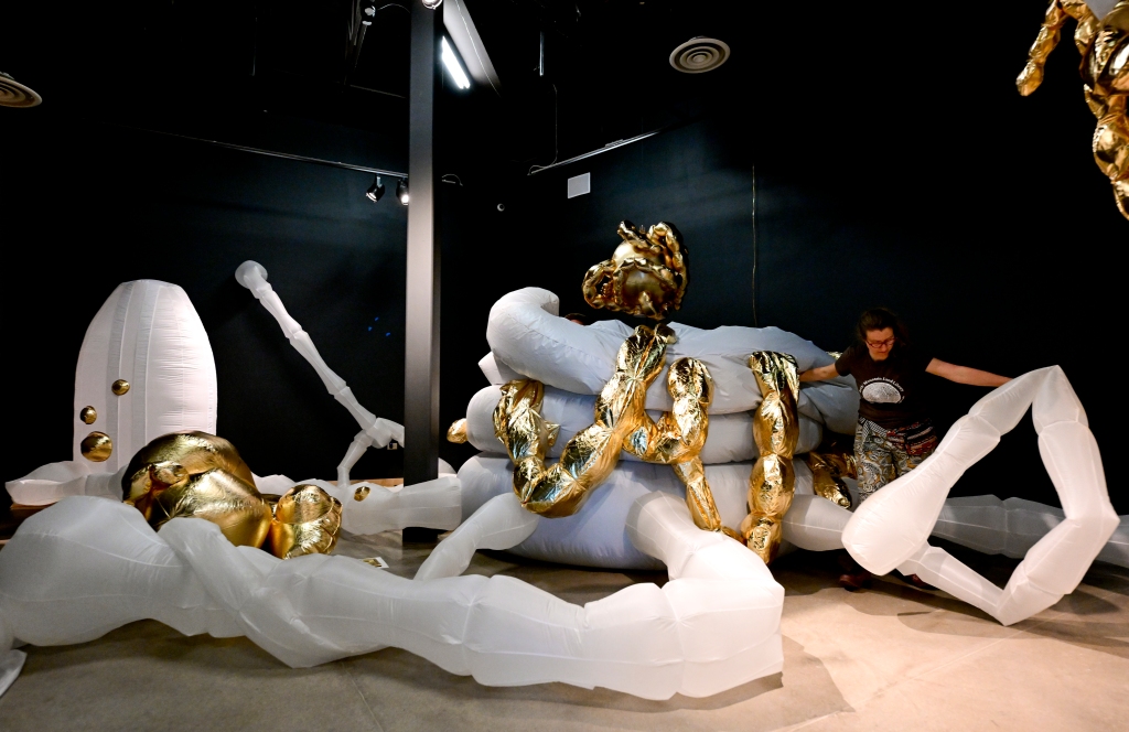 Artist Nicole Barowetz sets up her installation piece titled “The Regeneration Series: Soil Regeneration Mode,” at the Longmont Museum on June 2. The piece is part of BMoCA and the Longmont Museum’s new joint exhibit “agriCULTURE: Art inspired by the Land.” (Matthew Jonas/Staff Photographer)