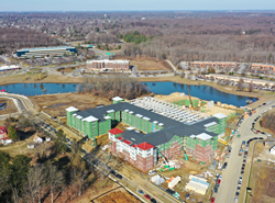 Construction Progress of the Aspen, a 388-unit luxury apartment complex, part of St. John Properties’ Melford Town Center mixed-use community in Bowie, MD.