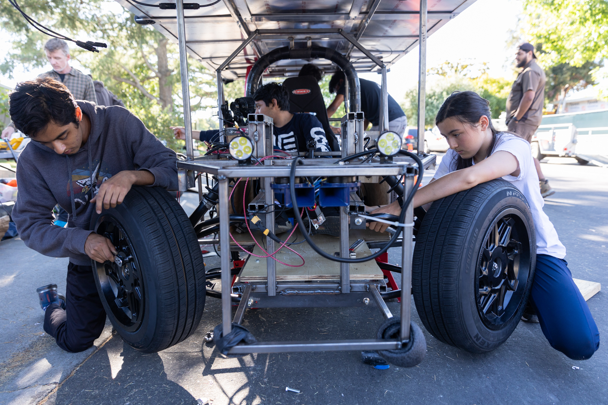 The Palo Alto Solar Vehicle team has spent the past four months designing and building The Beast, a three-wheel, 100% solar powered vehicle, from scratch. The team will be eligible to compete in the seven-day race if they pass the initial three-day “scrutineering” test in which judges ensure that the vehicle meets the requirements of the challenge and that the driver — a student on the team — is capable of completing the journey.