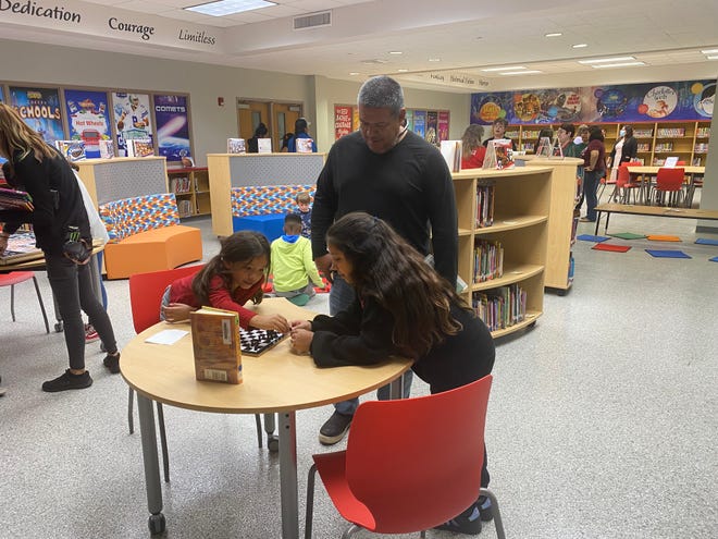 “Especially this room (the main library) and the play room,” Ellani Lopez, who won’t attend the school until next year but already is excited about the library, chimed in.