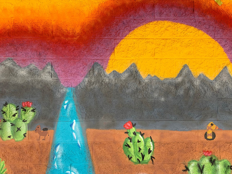 Student artists “worked with mural artists from Cruces Creatives (a nonprofit makerspace), who taught them about the history of public art and showed us the process of mural-making from start to finish,” said high-school teacher Stefanie Japel, Ph.D., who led the mural project.