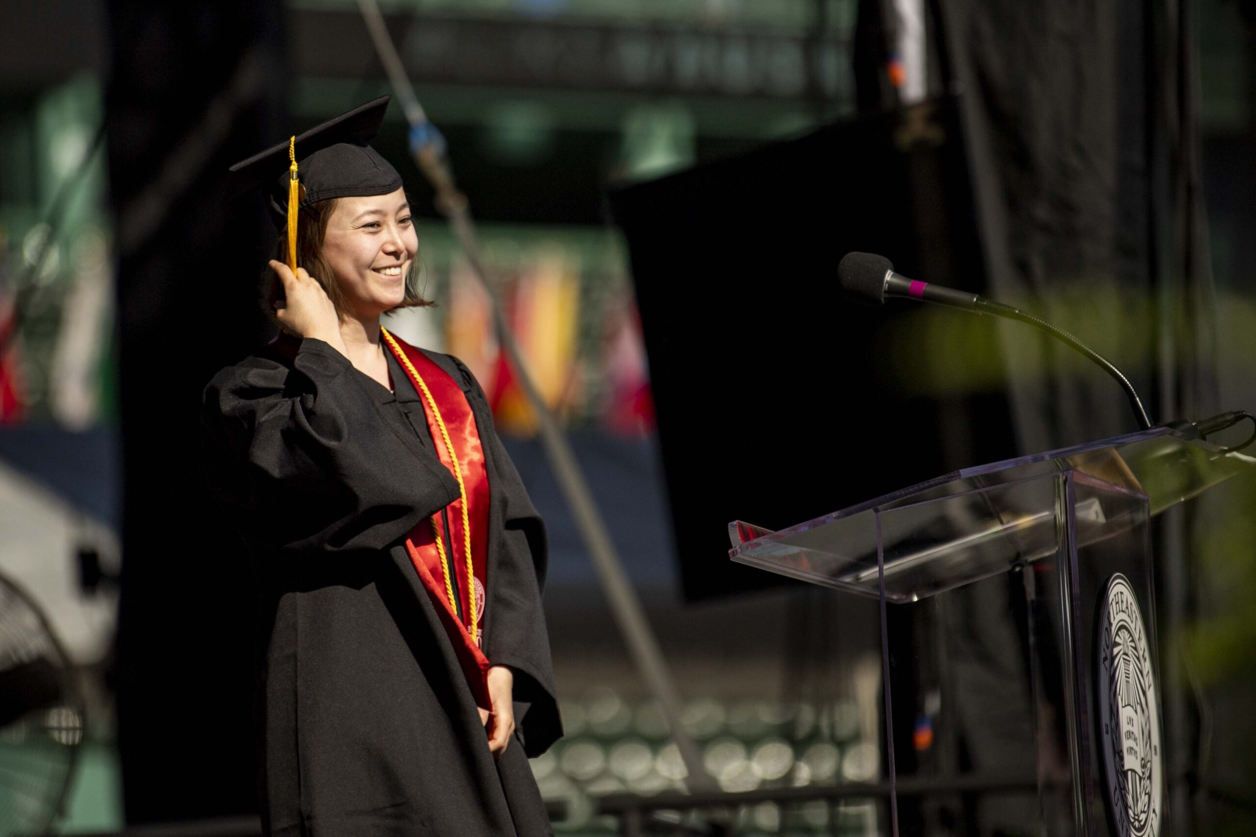 Northeastern University undergraduate student speaker Clara Wu urged fellow graduates to be proud of what they have achieved, cherish their families, and go out and turn their knowledge into action.