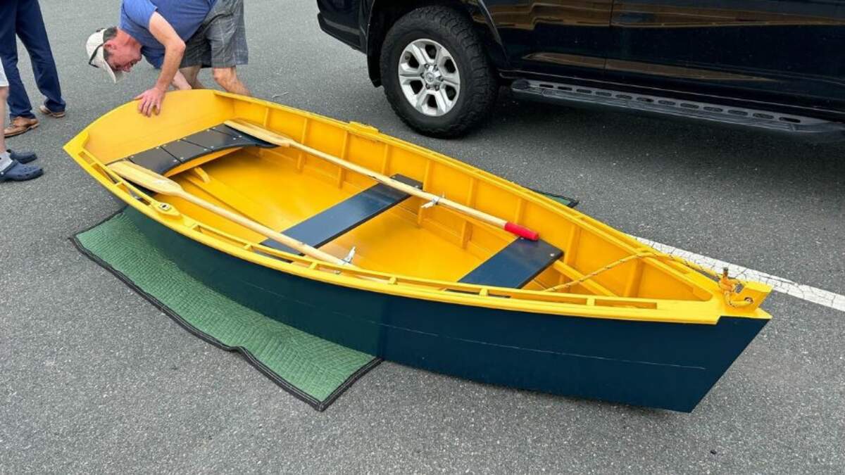 The finished three-seat navy and yellow rowboat was launched into the Atlantic for a spin, comfortably fitting a couple passengers for a daytime cruise. Michael McLaughlin, a longtime woodworking teacher, told WBZ’s Brooke McCarthy that he worked with the kids to help guide their vision to reality.
