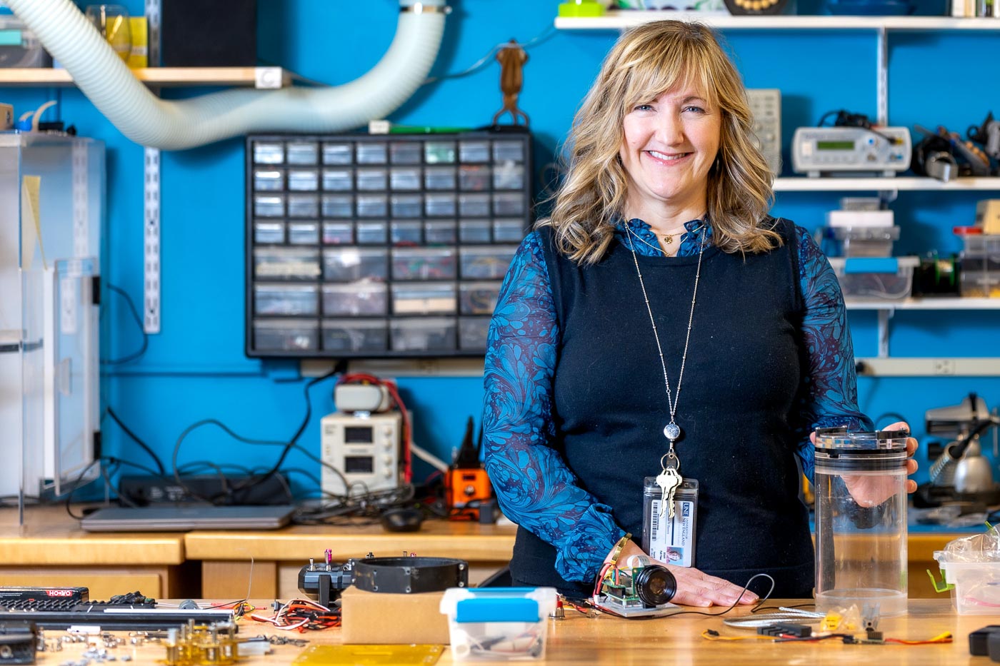 Justine Bassett, director of innovation at UNE, loves walking around the university’s P.D. Merrill Makerspace, surrounded by student projects — the whiteboard full of notes, CPUs connecting mazes of wires, students coming and going. Bassett was tapped to run innovation by university president James Herbert, who came to UNE in 2017 with a vision to help students contribute to the marketplace of ideas and develop interpersonal skills. Herbert believed in the expansion of experiential learning, and last year, the Office of Innovation opened to help realize his vision. Amid the clutter of student ideas coming to life, Bassett offered a deeper look at why innovation is important in collegiate education.