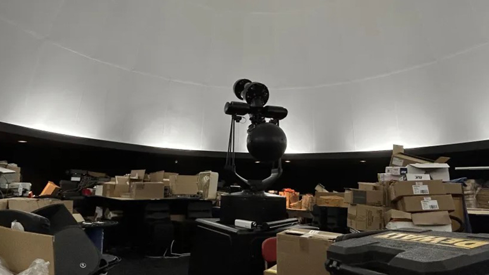 The planetarium at Arlington Middle School in Indianapolis has been left unused for years, collecting dust as a storage space full of chairs, keyboards, and boxes.