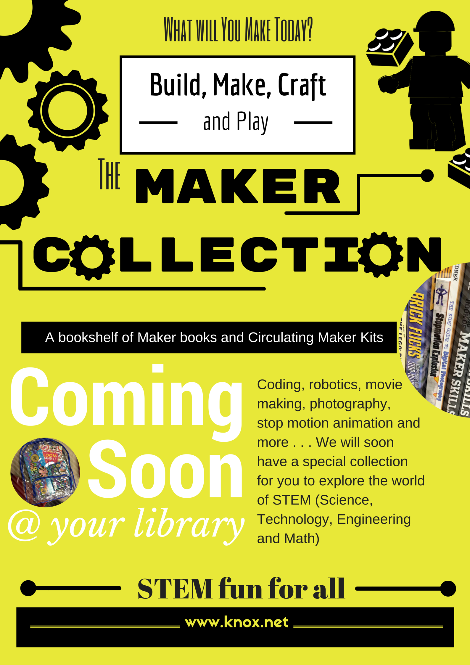 As step three in our efforts to fully embrace the Maker movement, and in conjunction with our Maker Collection of circulating titles, we are putting together Circulating Maker Kits (CMKs) that will check out to the public and provide our community with some simple but fun hands on introductions to Making. The Public Library of Mount Vernon and Knox County already has a really good prototype for this in the form of circulating toy kits bundled by theme for early childhood education, so we just adapted it for our Circulating Maker Kits. We are collecting a variety of toys, tools and resources on a particular theme and putting them together in clear backpacks that will be checked out as one complete unit. Each CMK will have an inventory list and in addition to the resources we buy, we are also planning to print off on-line instructions where appropriate to add in the kits as…