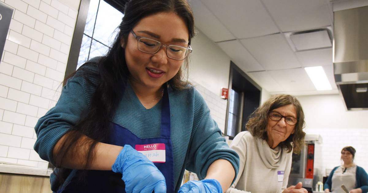 About 30 volunteers joined library staff members in a day of service, preparing meals in the library’s Makerplace kitchen for a local PADS homeless shelter.