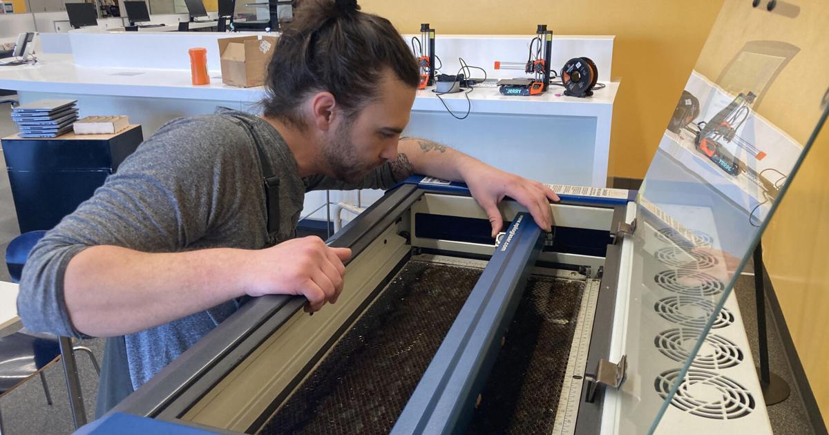 On Wednesday, Tanner Chambers, Mobile Maker outreach specialist, unloaded his van and set up shop at the library, 300 Norman Center Court, and encouraged the public to be creative and try something new.