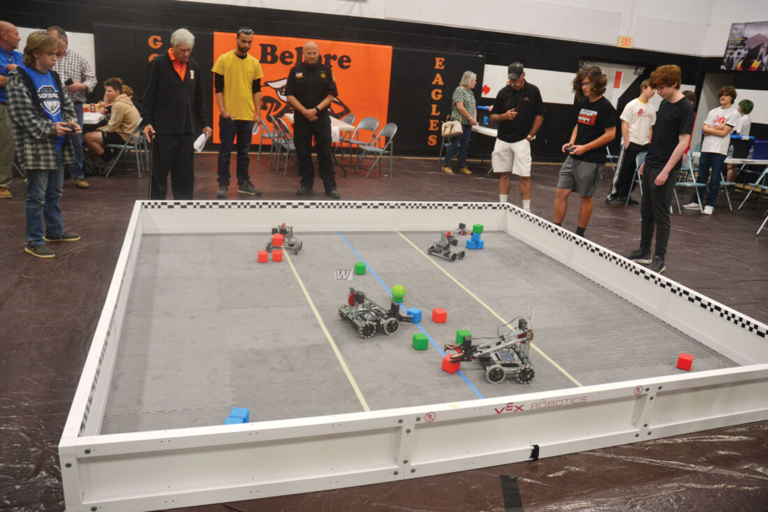 Students from Belpre High School and Fort Frye High School operate their robots during the first Ohio Valley Robotics and Drones competition at Belpre High School Tuesday.