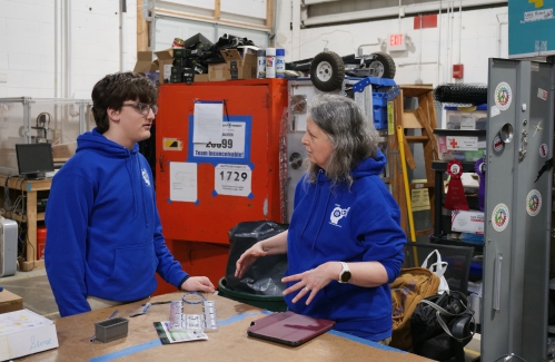The Peterborough-based team has been designing Sylvester since January, and made the semifinals in two district events, the North Shore Event, where they won the Best Imagery award; and an event at the University of New Hampshire, where they won Best Autonomous Programming. On Sunday night, they learned they  had qualified for the district championship, which runs from Thursday until Saturday and will include 90 teams from surrounding states.