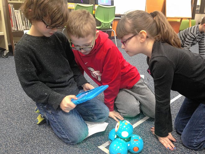 Marsha Pfahl, a media specialist at both Ridgewood and Britton, coached the class on how to use coding to make the robots move.