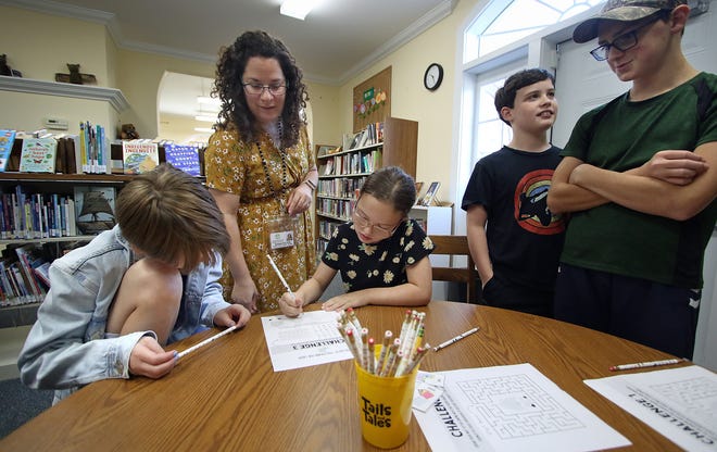 Library Programming Assistant Susan Fulton leads a STEAM Club event Monday morning at the Spangler Branch Library in Lawndale.