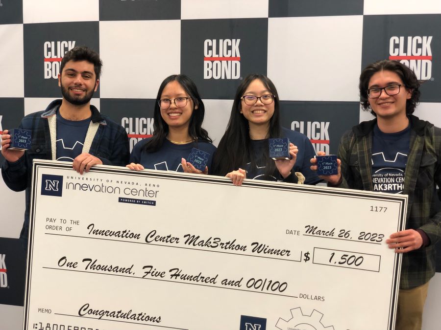The University of Nevada, Reno Innevation Center held its third annual Makerthon competition, presented in collaboration with Click Bond, Inc., March 24-26, 2023. This year, distinguished as Mak3rthon, seven teams of students – the largest cohort yet – were featured in the 48-hour competition.
