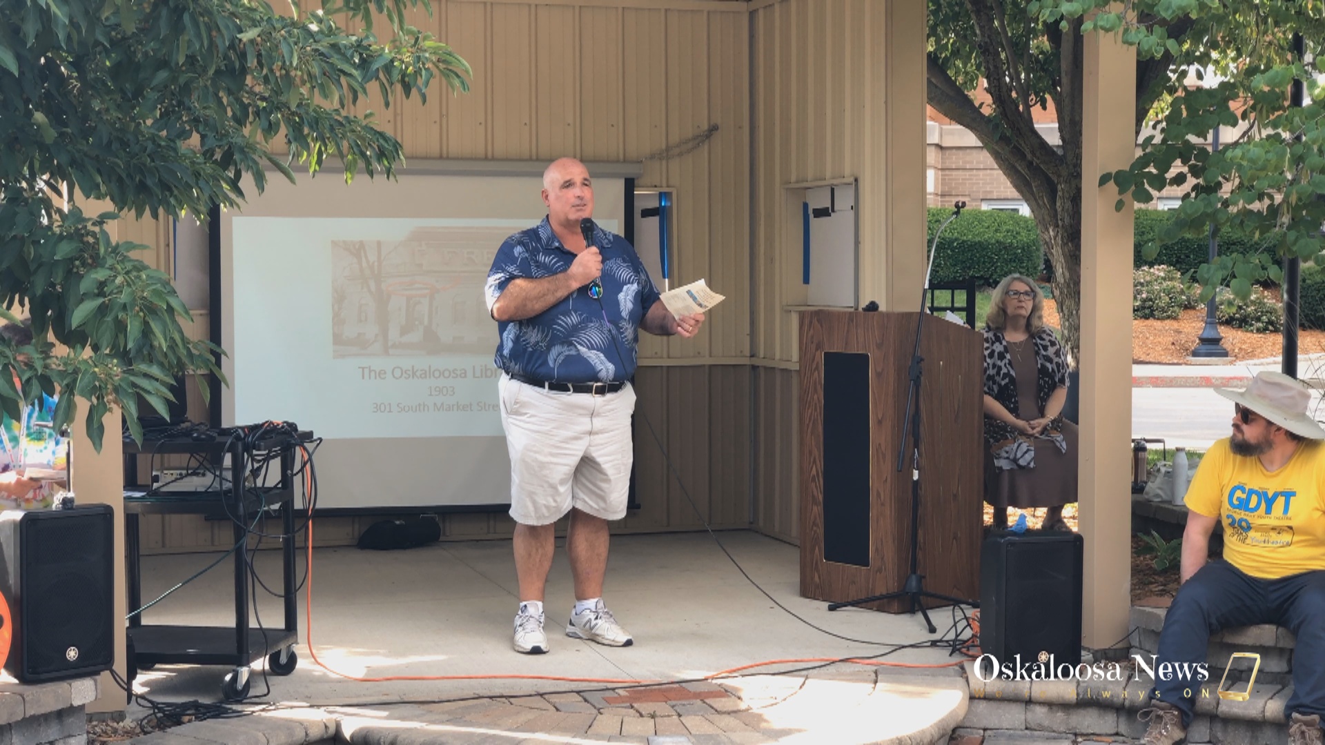 Oskaloosa, Iowa – Former Oskaloosa Mayor Tom Rielly was the master of the ceremony this past week as the Carnegie Library in Oskaloosa was recognized on the Historic Building Marker program.