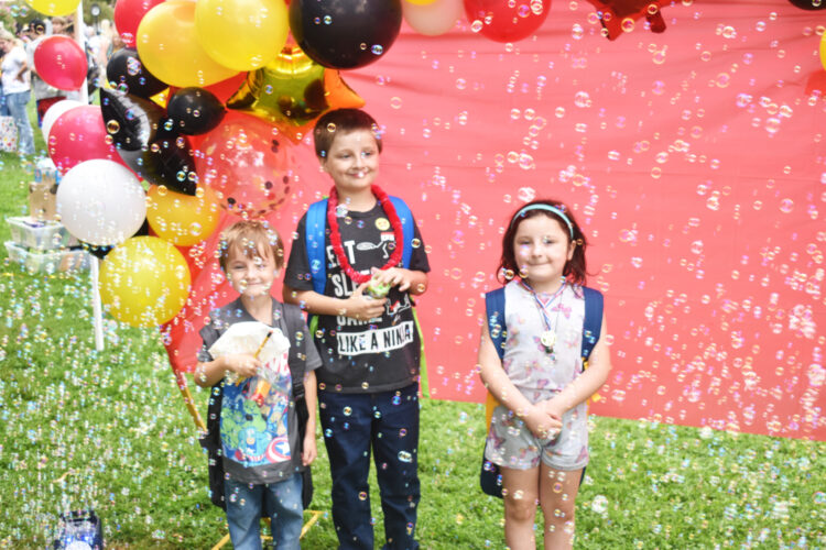 From left, Samuel, Sebastian and Serenity Lanham, students at Willard PK-8 School, enjoyed the bubble display at the Warren City Schools back-to-school celebration at Courthouse Square in Warren last week.
