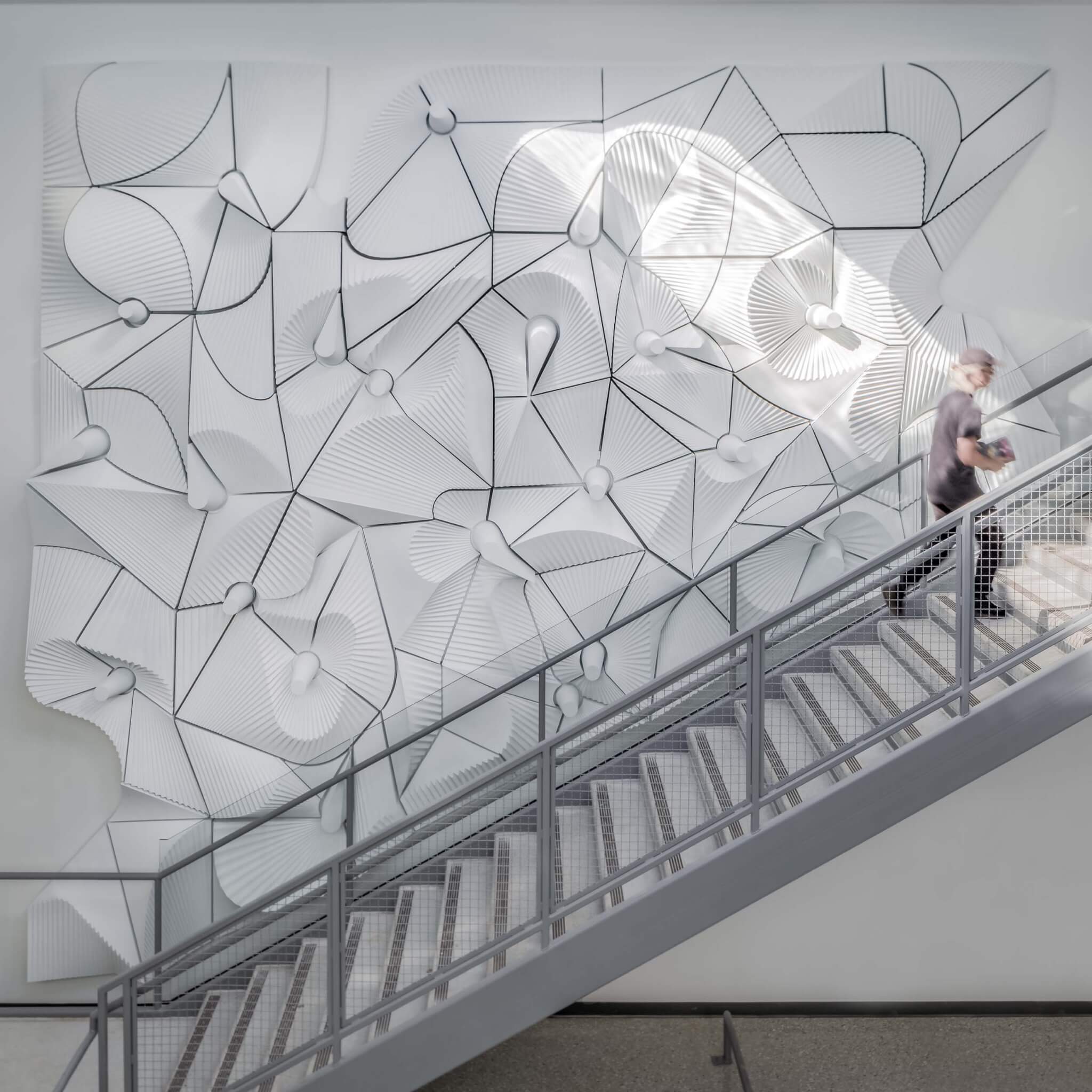 A new degree program at the University of Pennsylvania Stuart Weitzman School of Design is already beginning to bear fruit in the world. Deep Relief, a large-scale sculptural wall installation, was recently completed by students in the school’s Master of Science in Design: Robotic and Autonomous Systems (MSD-RAS) program. It is installed in the atrium of the Middletown Free Library outside Philadelphia, which held a dedication ceremony for the work on January 26.