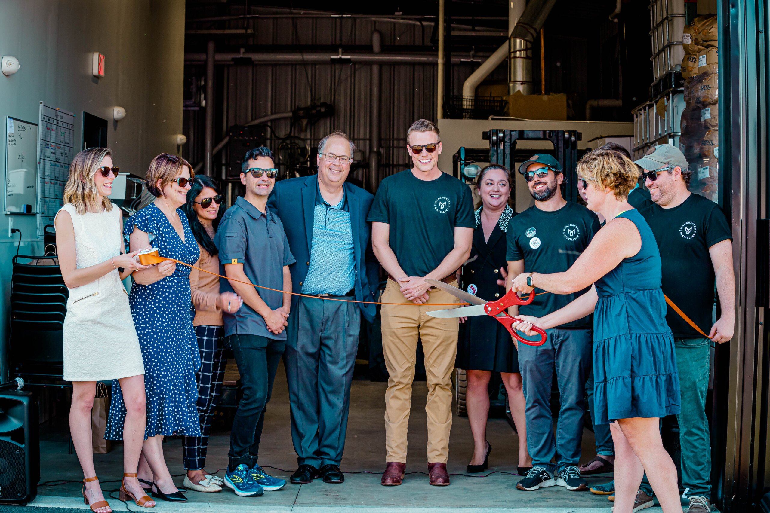 Manchester Distillery, the brainchild of Manchester powerhouses Liz and Jeremy Hitchcock, celebrated a ribbon-cutting ceremony earlier this month to a crowd of 300 people. The distillery produces premium, American-style gin and vodka, with plans to distill whiskey in the near future.